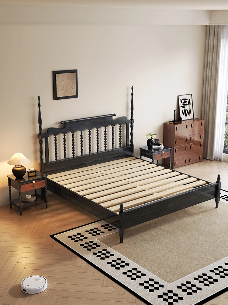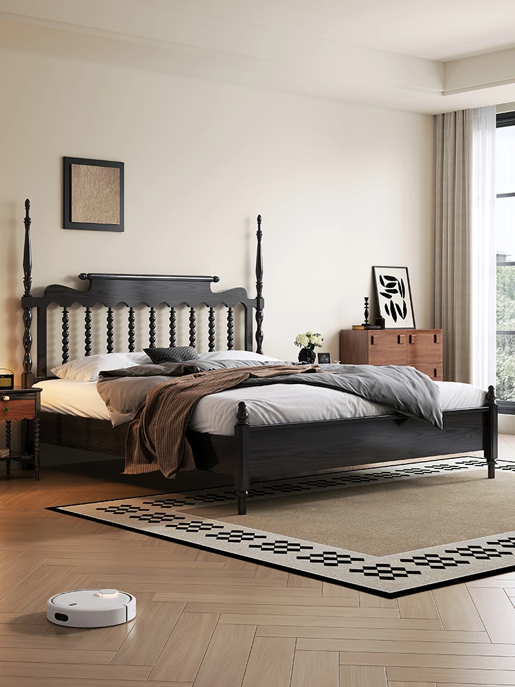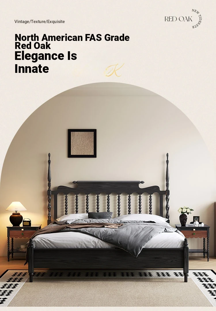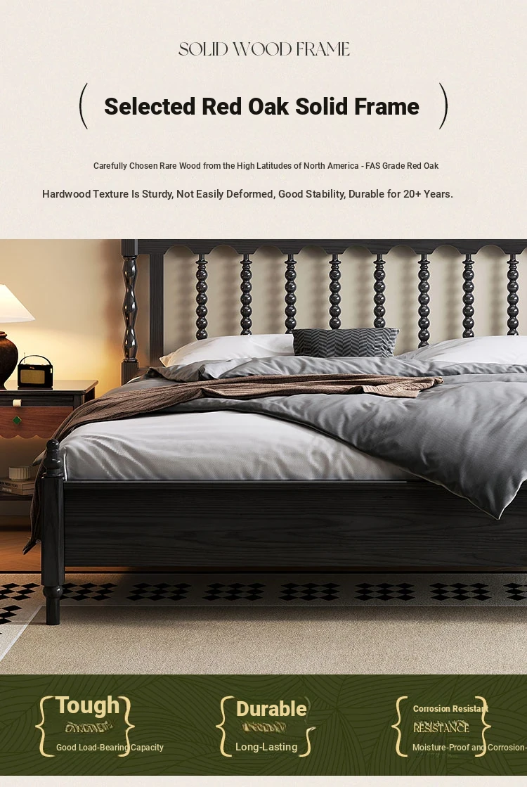 Windsor Solid Wood 1.8m Red Oak Thick Vintage American French Style Double Bed - Elegant and Durable Furniture for Master Bedroom