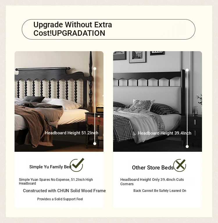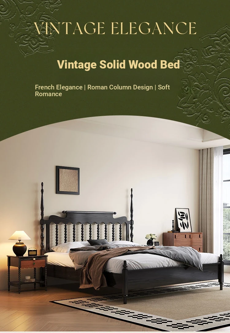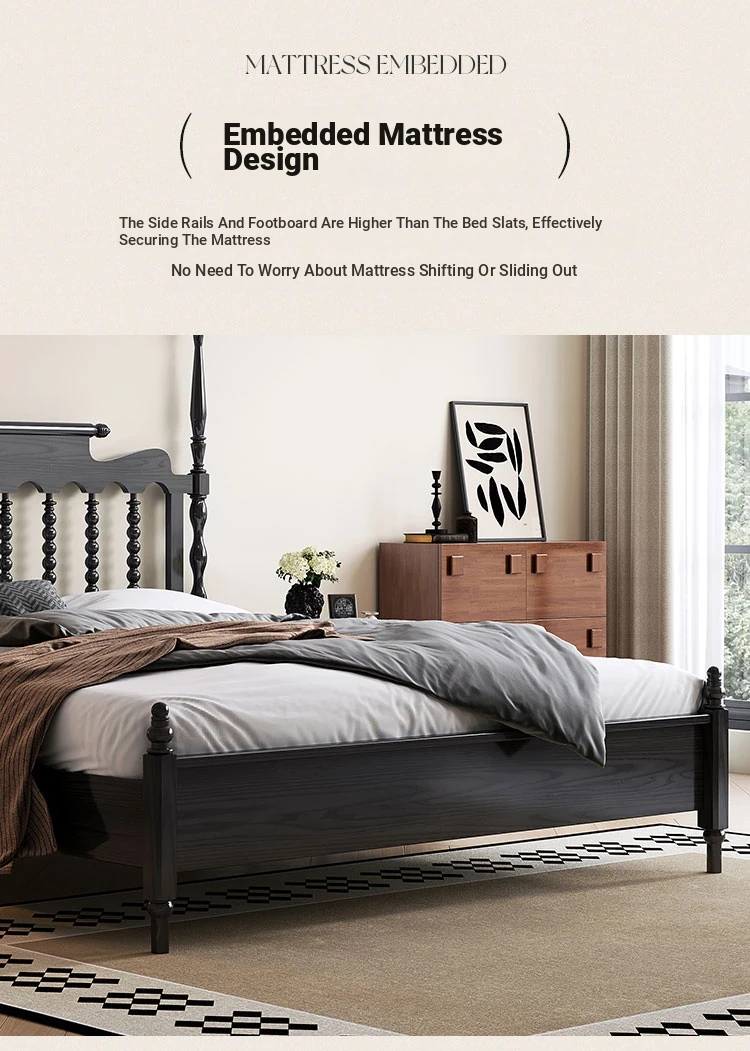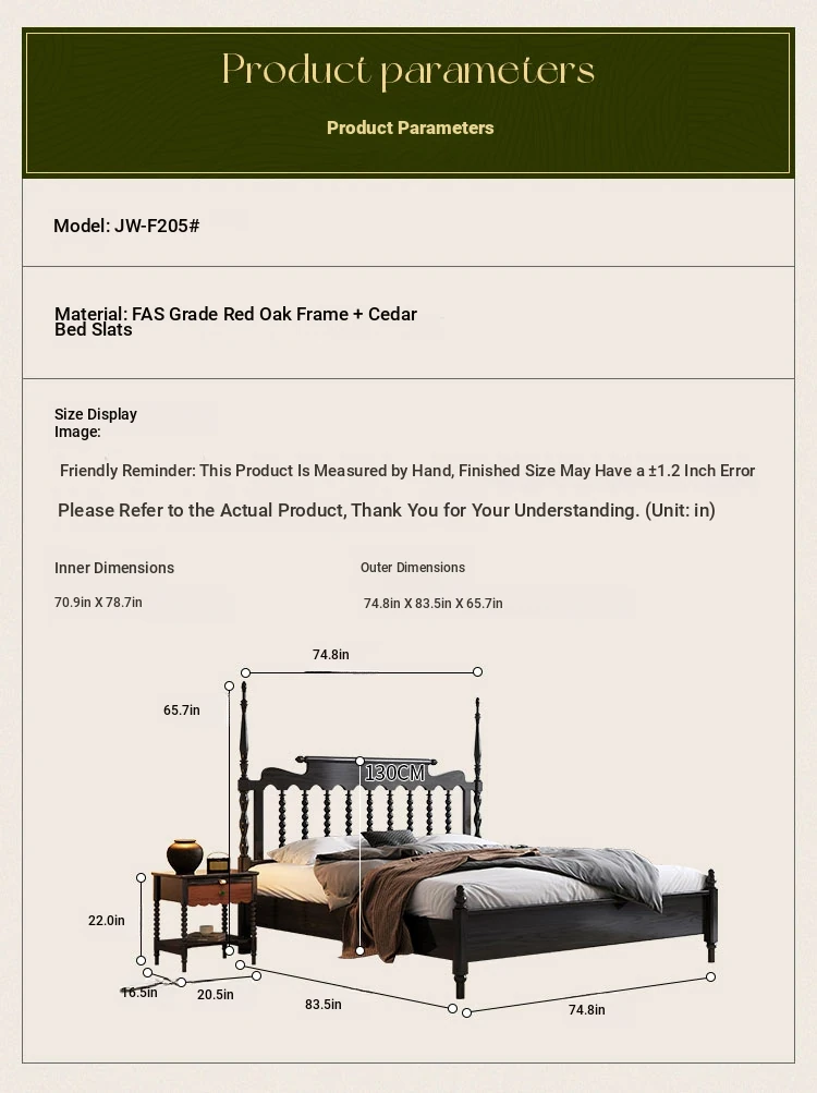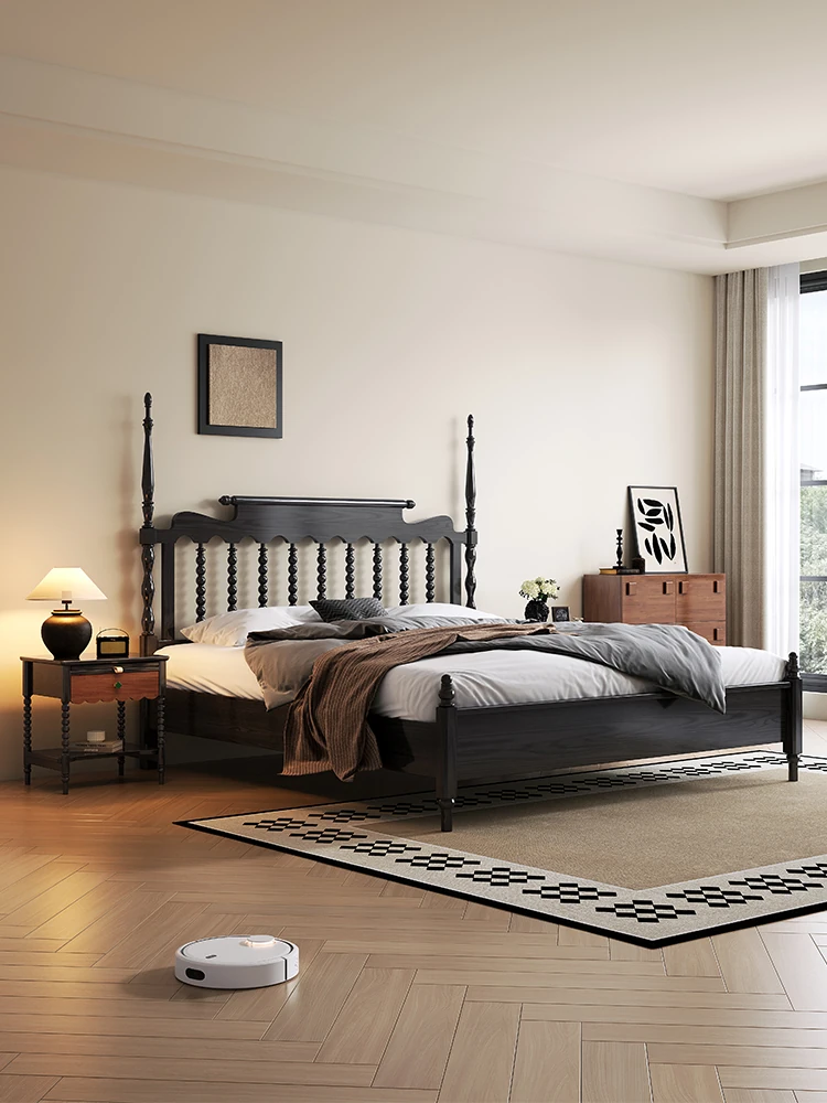 Windsor Solid Wood 1.8m Red Oak Thick Vintage American French Style Double Bed - Elegant and Durable Furniture for Master Bedroom