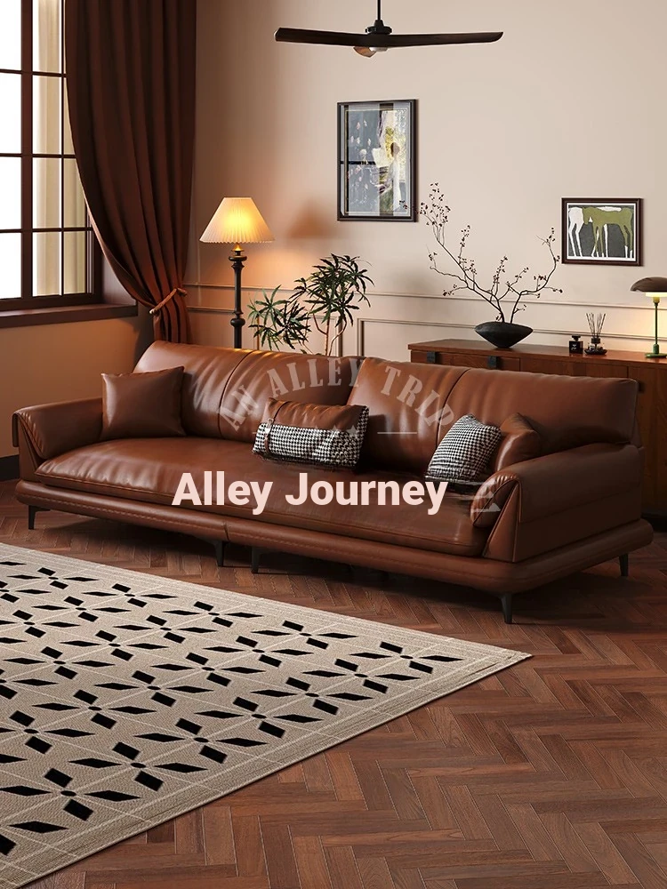 Vintage American Retro Waxed Leather Barton Sofa for Small Living Rooms - Mid-Century Style Brown Straight Sofa Perfect for Cozy Spaces