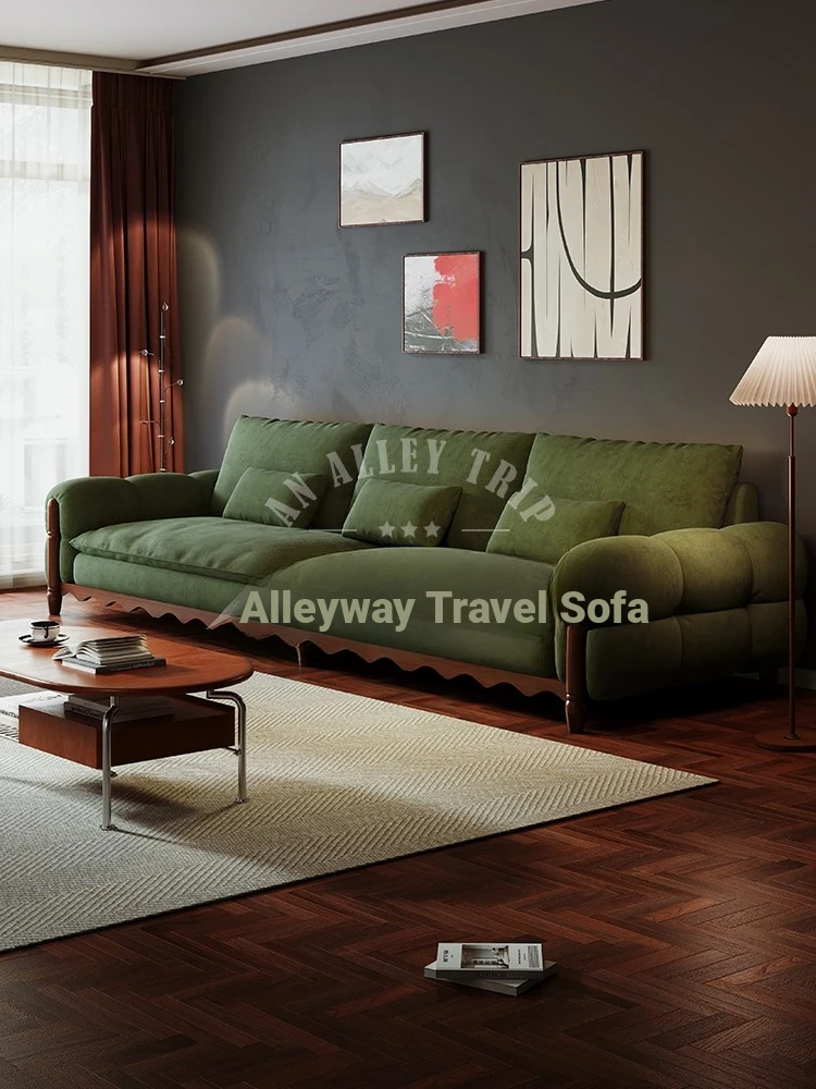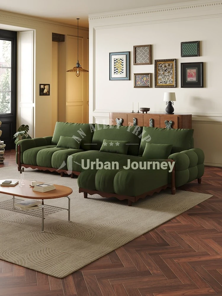 Chic French Vintage Fabric Sofa - Retro-Style Solid Wood Cloud Sofa for Living Room, Perfect for Cozy Corners - New Arrival!