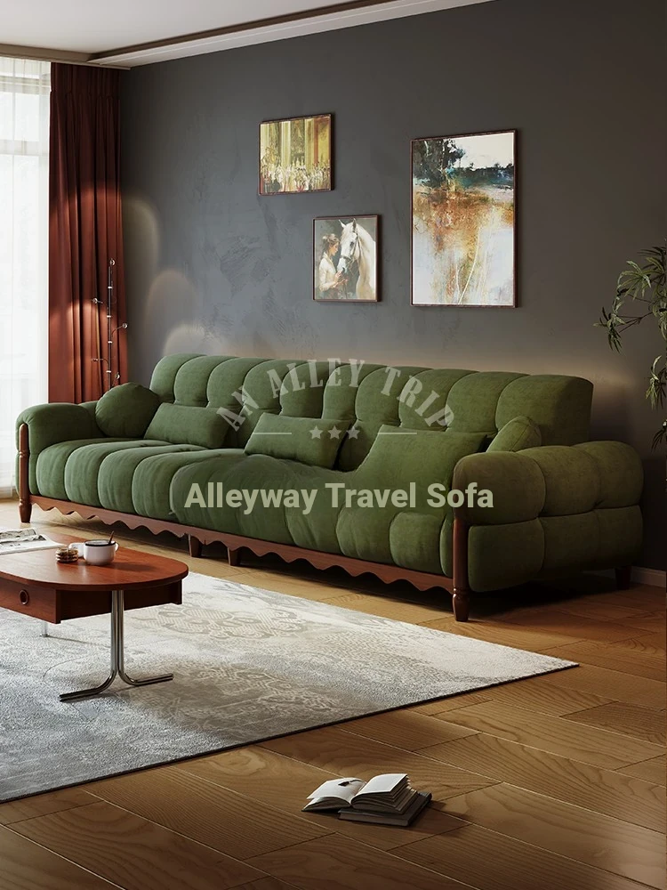 Alleyway Travel | Luxurious Vintage American Style Snowflake Velvet Sofa - Elegant High-End Mid-Century Living Room Furniture