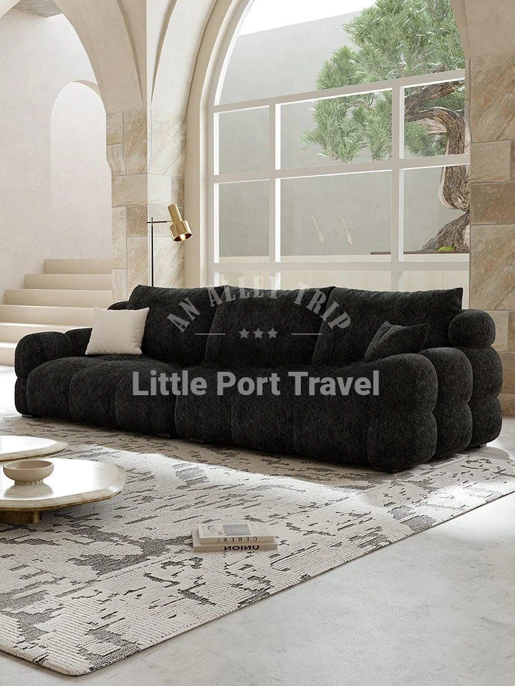 Nostalgic French-Style Chenille Plush Cotton Candy Puff Sofa - Perfect for Small Living Rooms and Cozy Spaces