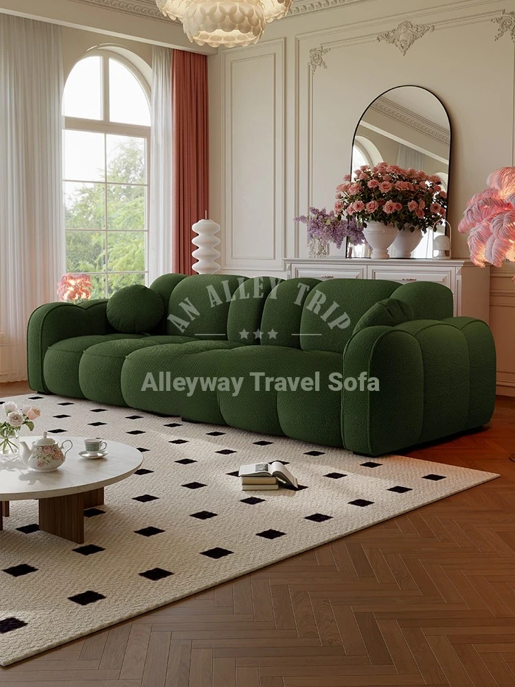 Vintage French-Style Lamb Fleece Biscuit Sofa - Perfect for Cozy Living Rooms and Small Spaces, Featuring a Cloud-Like Design for Ultimate Comfort