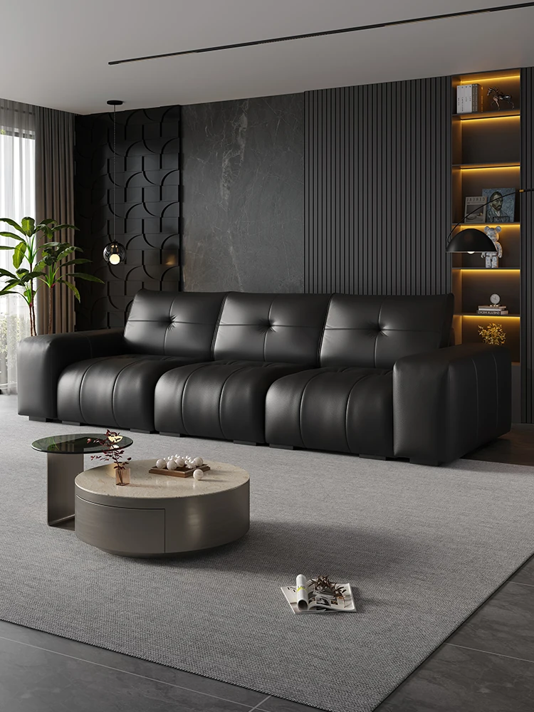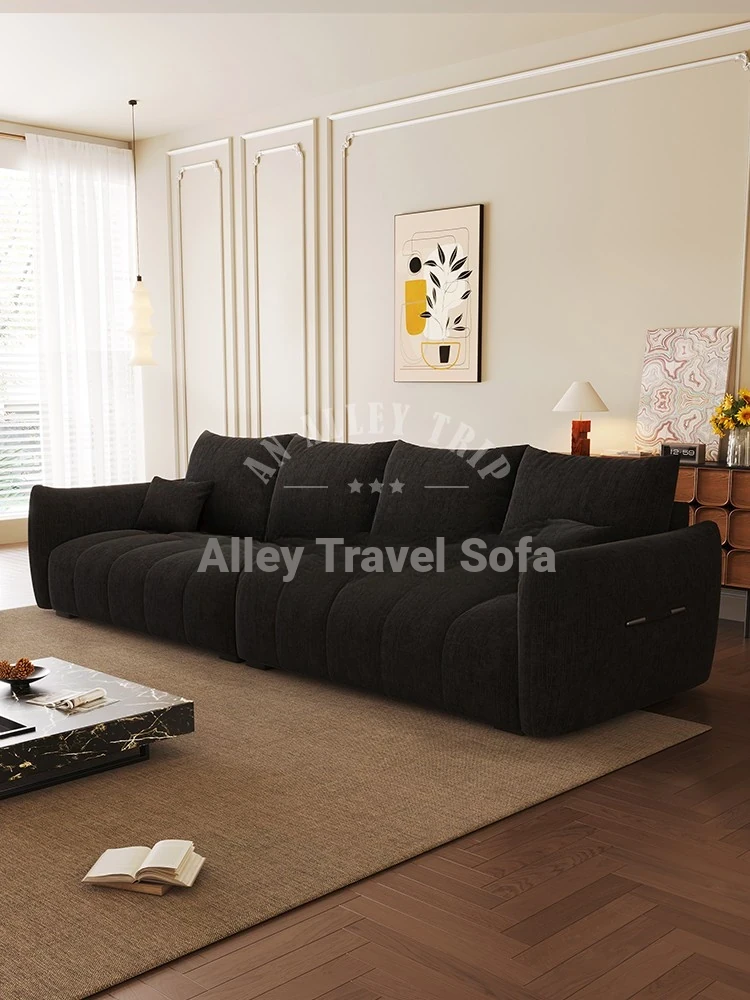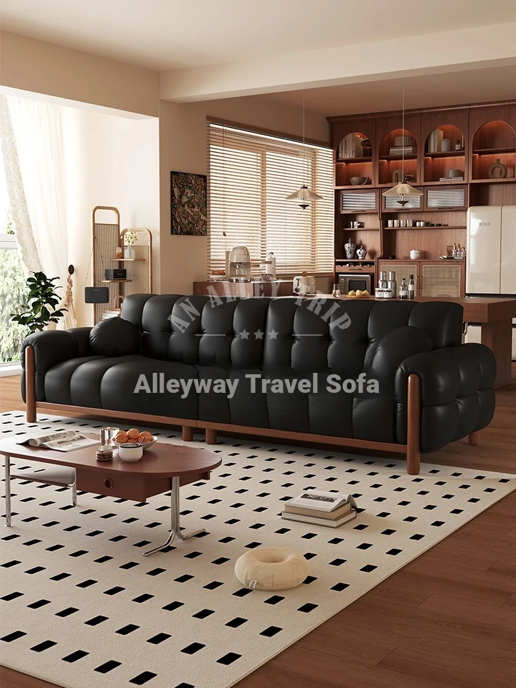 Chic Alley Retreat | Italian Luxury Genuine Leather Black Sugar Cloud Sofa - 25 Stylish Designs for Compact Living Rooms, Featuring Cozy Down-Filled Upholstery