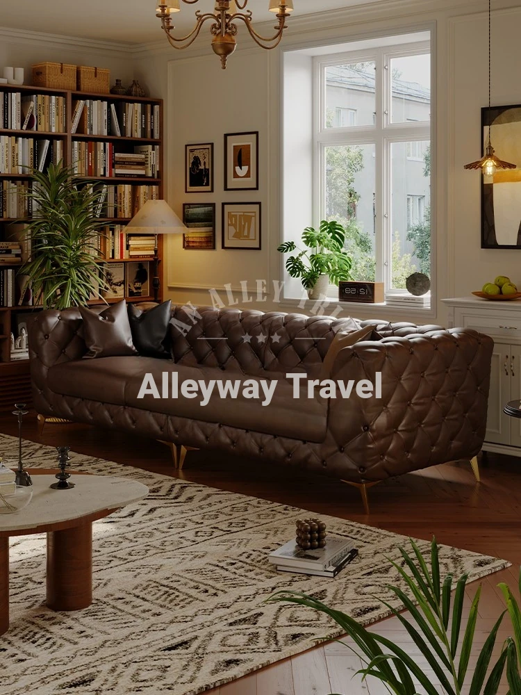 Alley Travel | American Vintage Waxed Leather Sofa - Luxurious Deep Seat for Small to Medium Living Rooms with Stylish Button Tufting