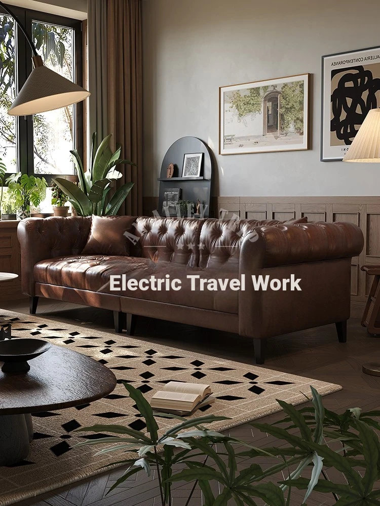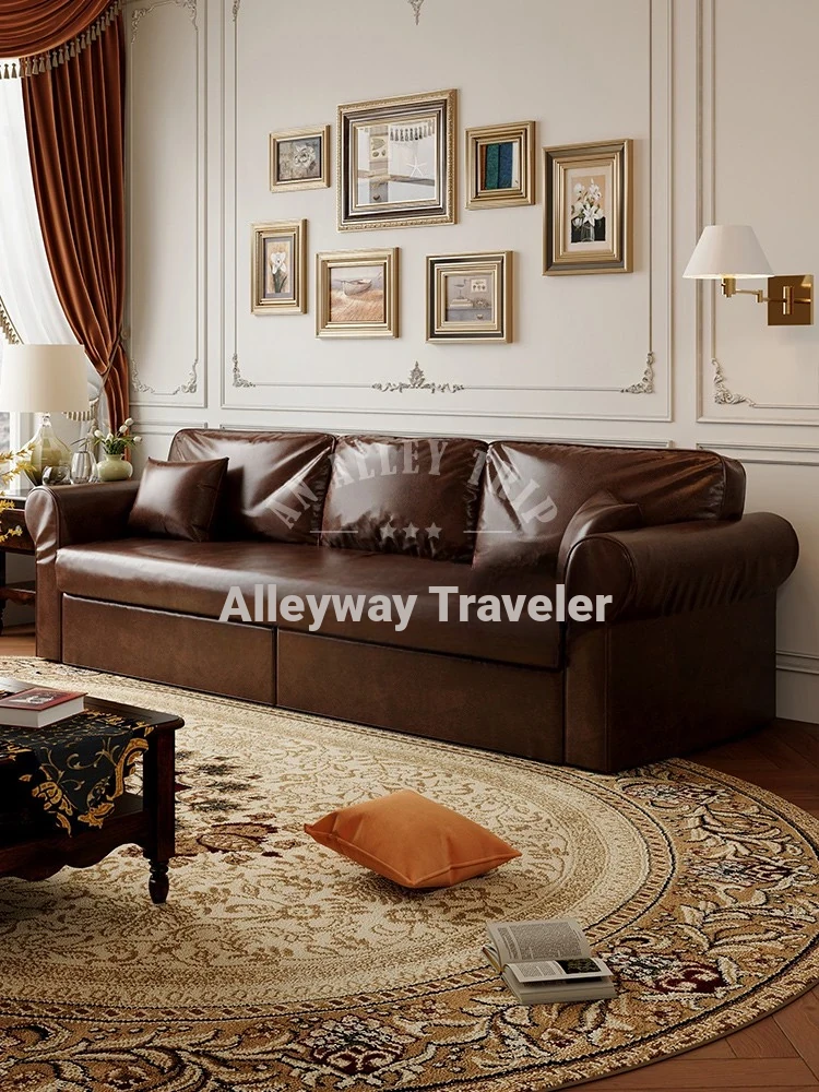 Vintage American Style Hector Sofa - Retro Leather Sofa for Villas and Small Living Rooms, Perfect for a Cozy Ambiance