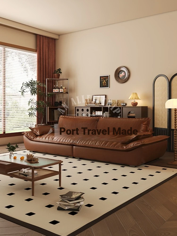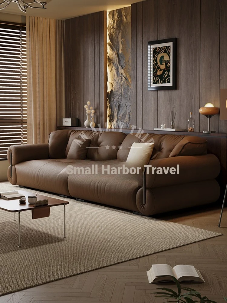 Alley Travel | Italian Minimalist Genuine Leather Elephant Ear Sofa - Cozy Down-filled Small Apartment Couch - New Arrival 2025