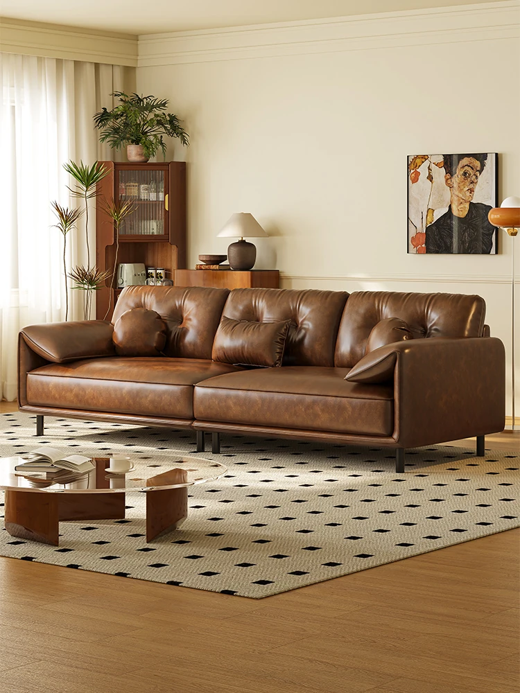 Vintage Italian Retro Oil Wax Leather Sofa - Perfect for Small Living Rooms, Antique Brown Distressed Design for a Cozy Touch. Ideal for Your Chic Home Décor!