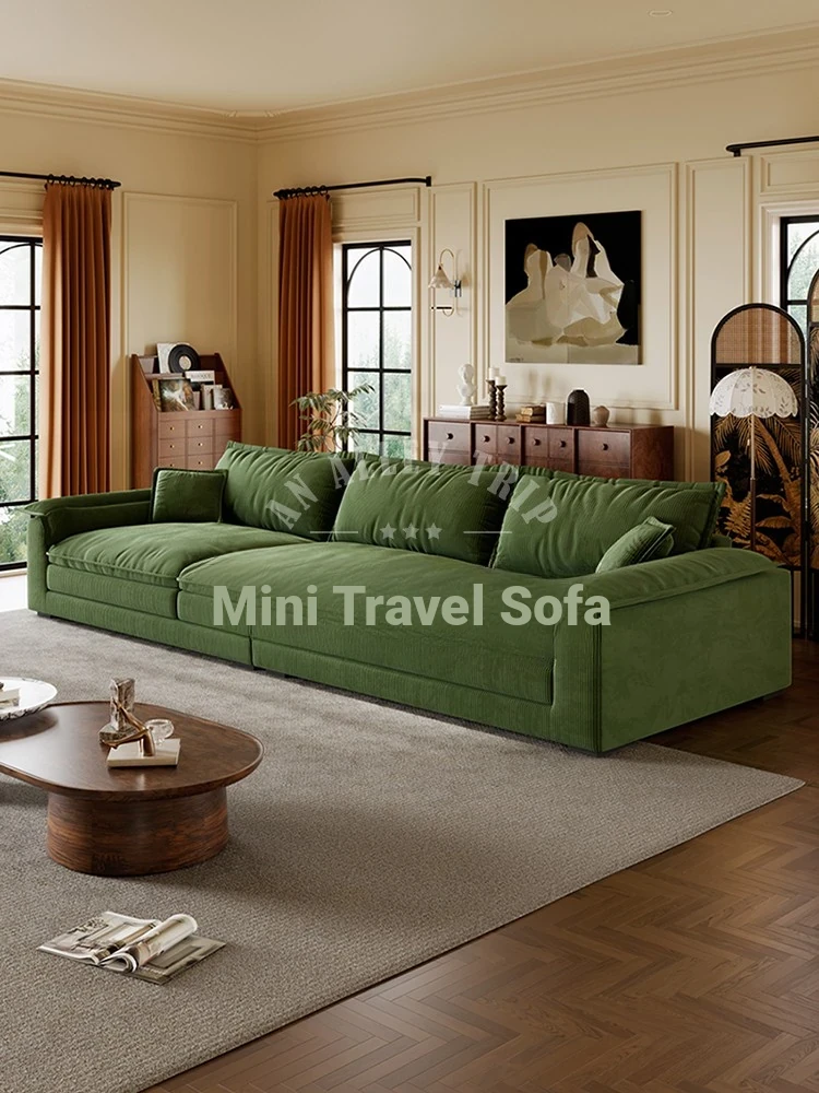 Nostalgic French Vintage Corduroy Sailboat Sofa - Minimalist, Washable Design for Small Spaces, Perfect for Your Living Room