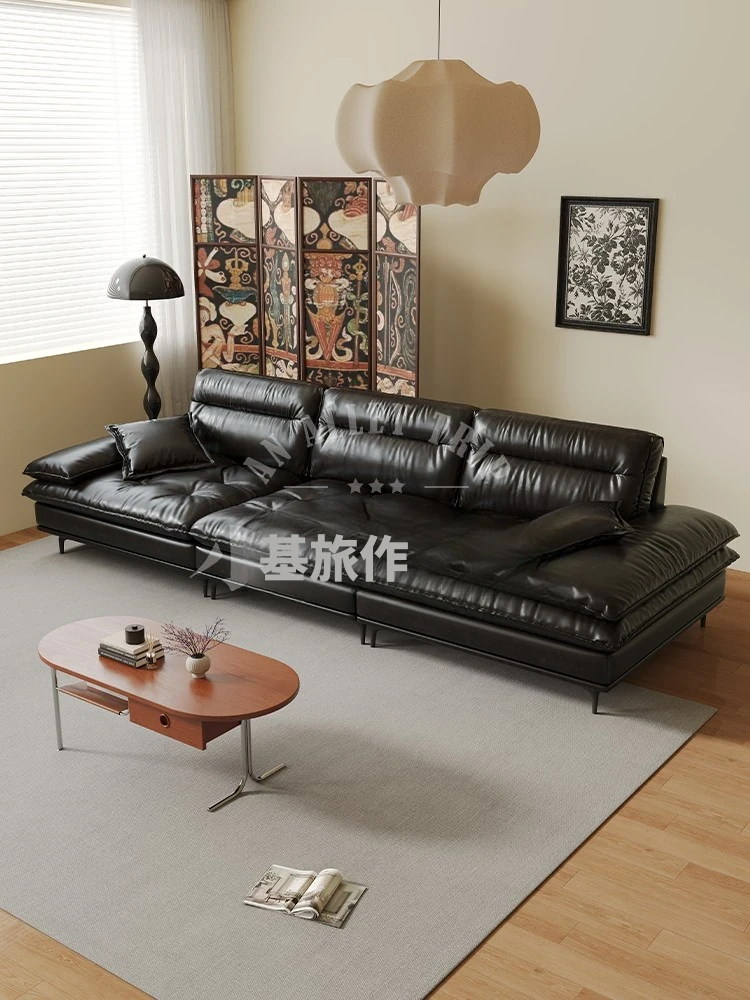 小道旅行 イタリアンヴィンテージ風 オイルワックス本革 大型ブラックカウソファ 超ワイドシート 2025年モデル リビングルーム用ソファ