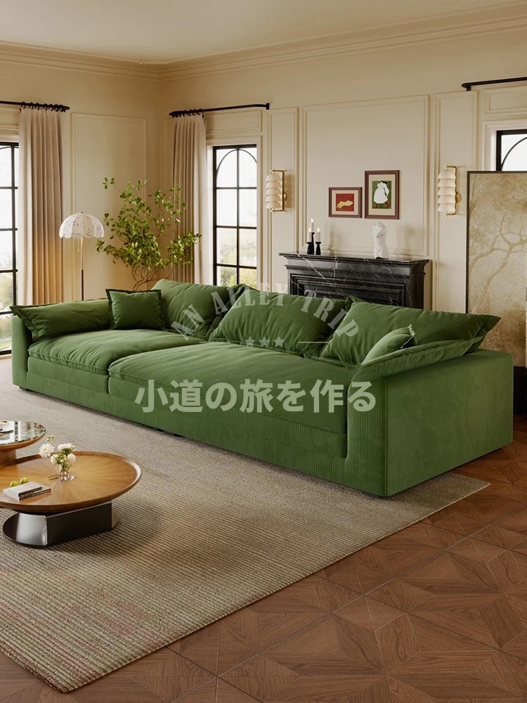 小道の旅|フレンチビンテージ風スノーニールベルベットマシュマロシュークリームソファ 小型リビング向けストレートソファ